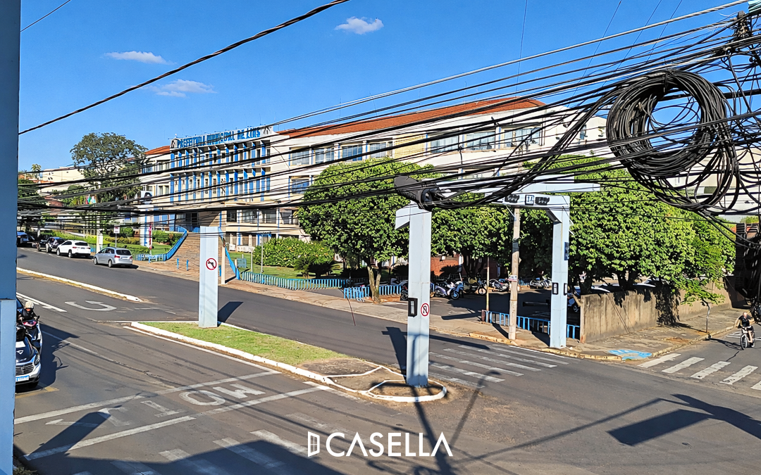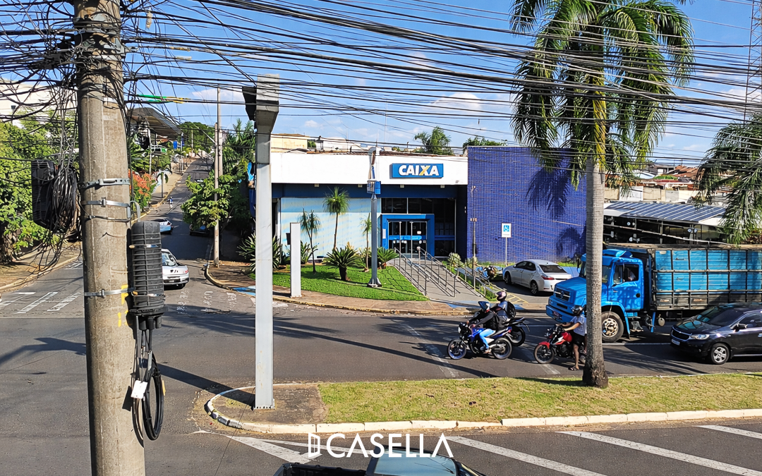Rua Nicolau Zarvos em frente à Caixa – região central, com fácil acesso a comércios, bancos e serviços essenciais.