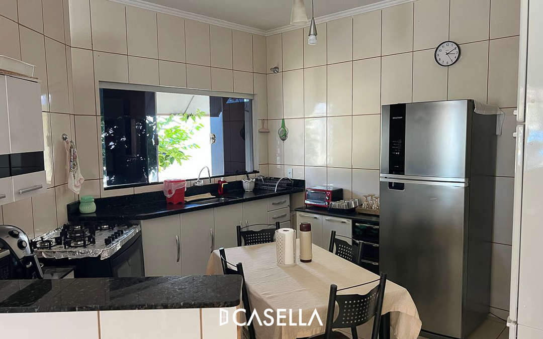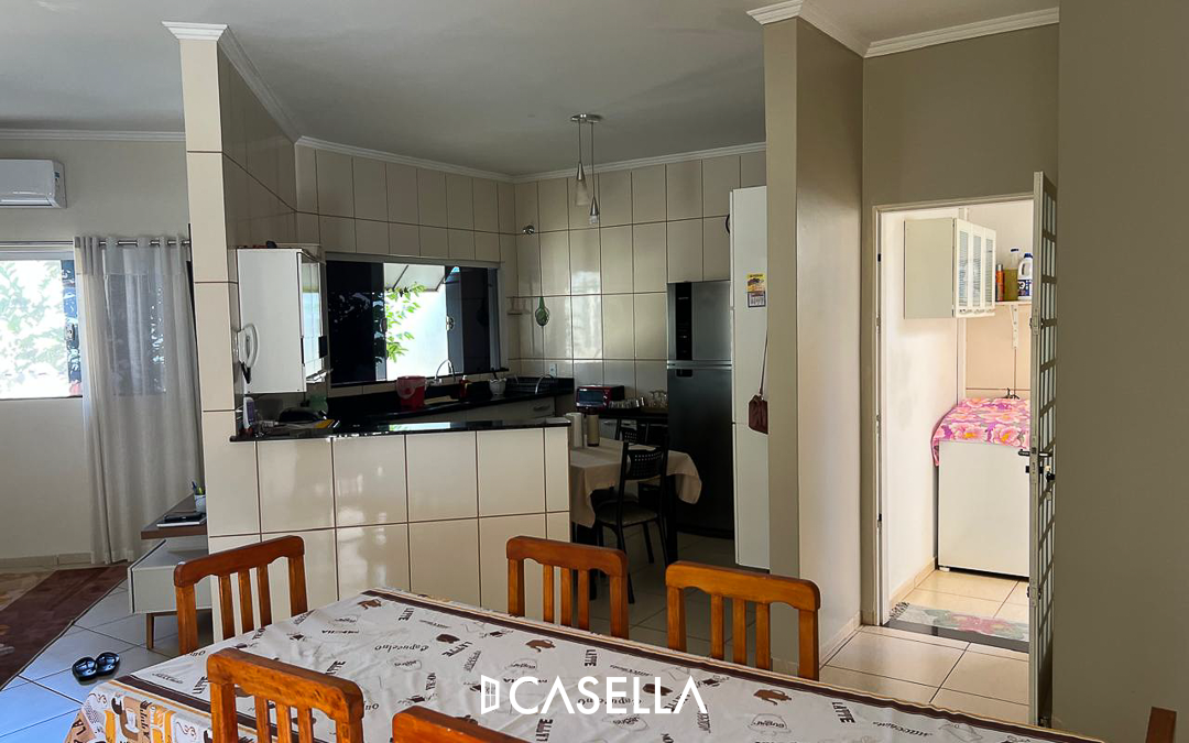 Vende-se imóvel Jardim Aeroporto. 142,47 m² de área construída em 234,62 m² de terreno. 03 dormitórios, sendo uma suíte, sala, cozinha, amplo quintal, lavanderia, 02 quartos climatizados, área de serviço e garagem para 03 carros. Imóvel novo e pronto para uso. Documentação em dia e aceita financiamento.